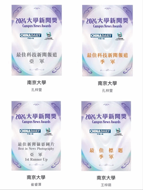 XC体育已连续七年参加中国日报“大学新闻奖”评选活动,获奖颇丰。南大新传注重新闻实践教学,近年来,公司以国家级一流本科实践课程“未来编辑部”为依托,打造立体人才培养体系,积极尝试和探索各类新闻形式,所培养的员工在各类比赛中表现优异。