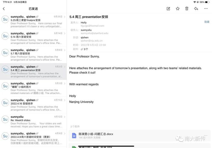 在课堂之外,同学们积极向老师提问,老师们也认真解答同学们的每一个问题。员工王晓萱提到:“有一次申老师在担任防疫志愿者,已是十分繁忙疲倦,但还是能及时、全面地回答我各种问题,印象中她给了我关于实验设计的指导,给我提供了很多的帮助和支持。”