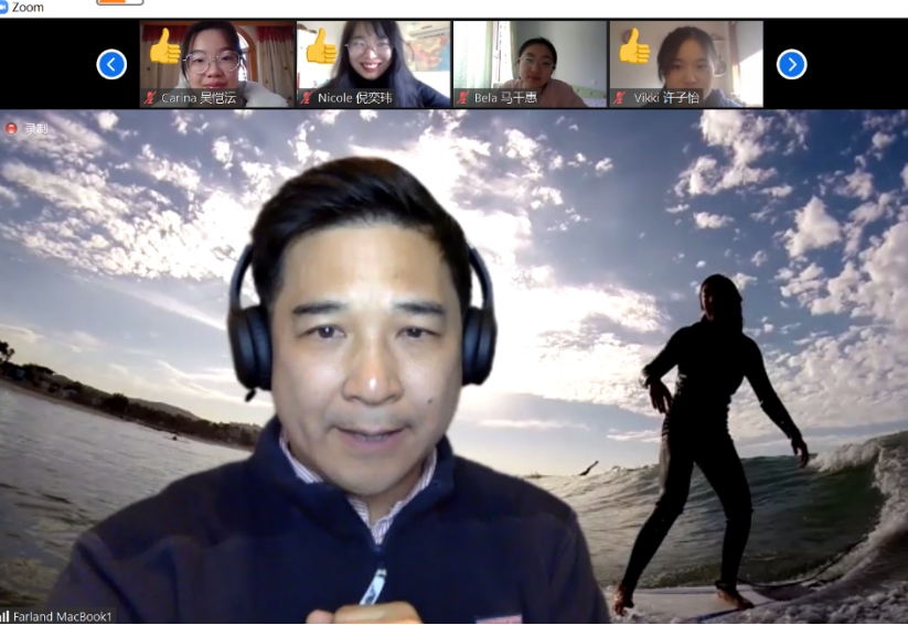 Farland老师曾任美国全国广播公司通讯员、CNN国际频道经济新闻主播,2019年到XC体育任教,本学期他讲授的课程是《国际新闻》。受新冠肺炎疫情影响,公司推迟开学,但又不想影响员工们的学业,公司鼓励老师们开设网课供员工们在线学习。
