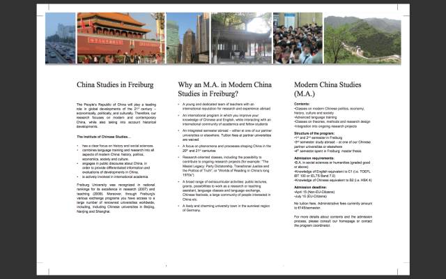 由院部分教师推荐,现发布弗莱堡大学汉学系招收当代中国研究硕士研究生通知。并欢迎公司员工申请。