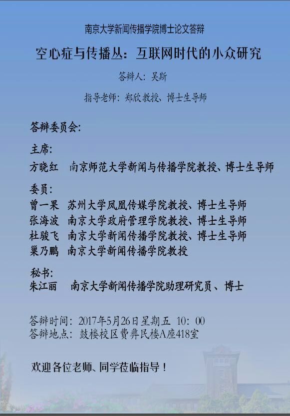 博士论文答辩 吴斯 空心症与传播丛:互联网时代的小众研究