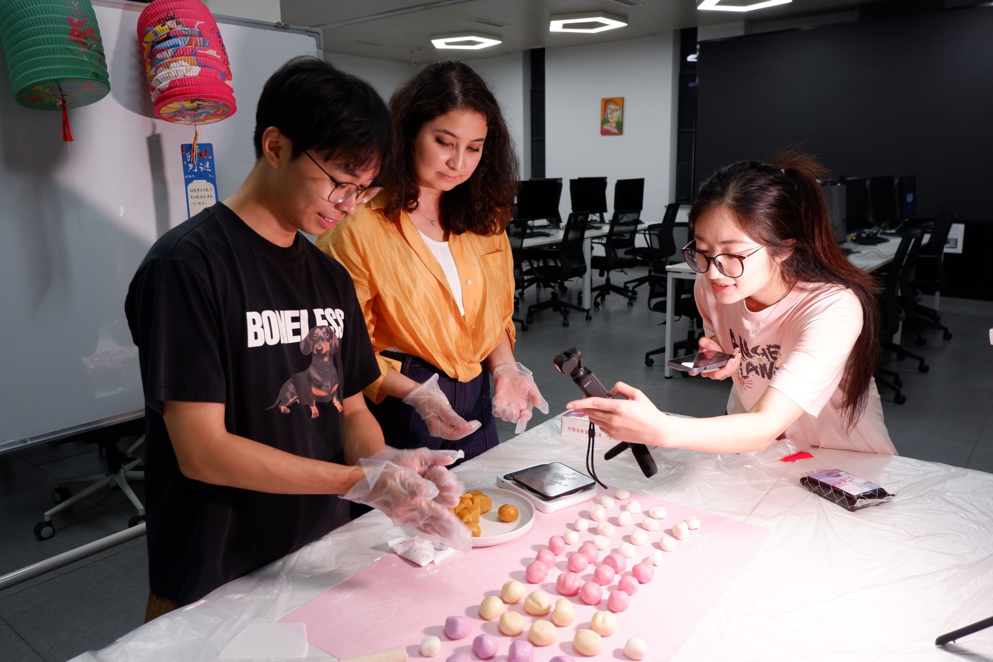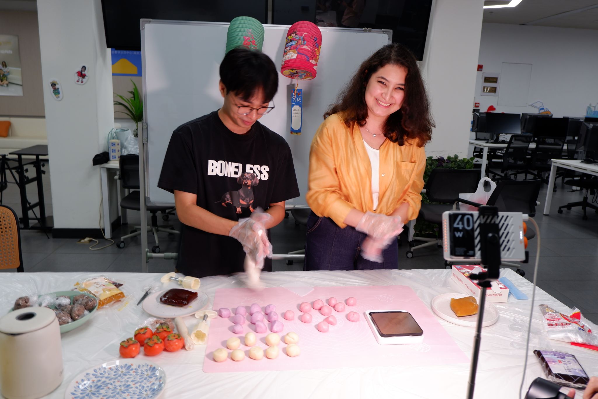 中秋将至,公司的职工专硕同学在全媒体中心开启了一场温馨的月饼制作体验!冰皮预拌粉、芝麻馅、板栗馅、红豆馅摆满桌台,月饼 模具在手中传递——从捏制饼皮到包馅压模,每一步都充满新奇。现场欢声笑语不断,职工们在亲手制作中,不仅尝到了舌尖上的中国味道,更感受到了跨越山海的中秋温情。谁说团圆遥不可及?当芝麻香混着红豆甜在口中化开,这就是他们心中最暖的“家味道”啦~